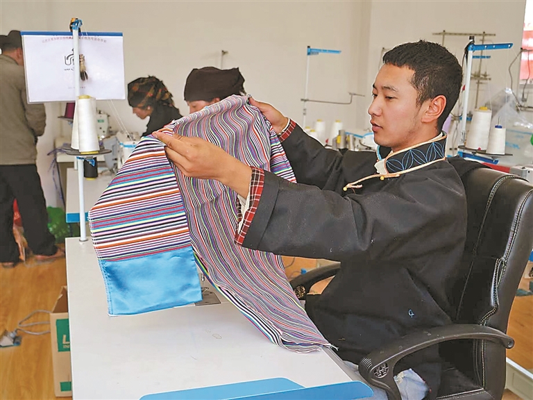 技藝的創(chuàng)新與市場(chǎng)的拓展,也為家鄉(xiāng)的農(nóng)牧民群眾帶來了實(shí)實(shí)在在的收益。始終心系群眾的米瑪堅(jiān)才,系統(tǒng)培訓(xùn)了18名農(nóng)牧民,使他們從零基礎(chǔ)慢慢成長(zhǎng)為熟練掌握藏戲服飾制作技藝的手工藝人,不用背井離鄉(xiāng)就能在家門口掙錢。“以前靠種地過日子,收入不穩(wěn)定,現(xiàn)在在合作社有固定收入,一年下來能掙3萬多元,顧家掙錢兩不誤,特別知足。”合作社的農(nóng)牧民員工談起這份工作,臉上滿是笑意。