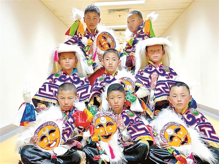花至少三天時(shí)間制作一個(gè)大的藍(lán)面具,用一周左右制作一套藏戲服裝……在米瑪堅(jiān)才手里,一抹抹絢麗的色彩渲染著角色的命運(yùn),一道道清晰的刻痕勾勒出故事的輪廓。