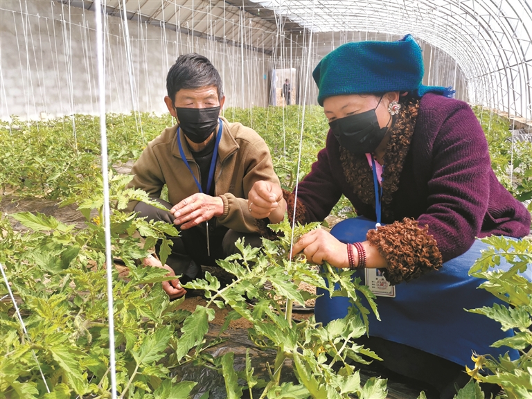 近年來,西藏拉薩市積極推動農(nóng)業(yè)產(chǎn)業(yè)化建設,并加快農(nóng)業(yè)基礎設施建設、農(nóng)業(yè)科技創(chuàng)新與推廣、新型職業(yè)農(nóng)民與農(nóng)業(yè)科技人才培育等。在規(guī)?;?、現(xiàn)代化的農(nóng)業(yè)產(chǎn)業(yè)帶動下,越來越多的農(nóng)牧民群眾也意識到技術的重要性,他們逐漸開始學習新型種植技術,積極從一般農(nóng)牧民向懂技術、懂管理、能致富的“職業(yè)農(nóng)民”轉型。圖為墨竹工卡縣易地扶貧搬遷戶央宗在技術員的指導下學習西紅柿掐苗掛藤技術。