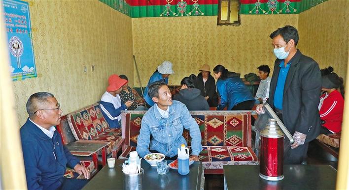 起床,打掃衛(wèi)生,準備食材,這是堆龍德慶區(qū)羊達街道通嘎社區(qū)建檔立卡貧困戶旦增卓嘎每天的日常生活。今天是他們?yōu)樽约业臒镜瓴少徥巢牡娜兆?,按照食材消耗速度,他們一周大概要去采購兩三次。在吃完一碗熱騰騰的藏面后,旦增卓嘎的丈夫米瑪便開著自己購買的車往菜市場趕去,旦增卓嘎則繼續(xù)為一天的經(jīng)營做著準備。