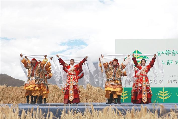 春種一粒粟,秋收萬(wàn)顆子,今年又是一個(gè)豐收年!在這金秋颯爽、碩果累累的季節(jié)里,9月22日上午,拉薩市第三屆中國(guó)農(nóng)民豐收節(jié)在堆龍德慶區(qū)隆重舉行。本次豐收節(jié)慶?;顒?dòng)吸引了大批農(nóng)牧民朋友匯聚于此,使得活動(dòng)開(kāi)幕式現(xiàn)場(chǎng)熱鬧非凡,在一片豐收的青稞田里,人們載歌載舞,分享豐收的喜悅。文/圖 記者 趙夢(mèng)茹