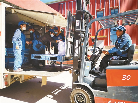 圖為該公司員工正在裝“納措瓊母”礦泉水。拉薩融媒記者 趙 慧攝