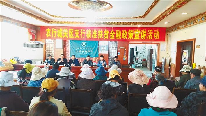 農(nóng)行城關(guān)區(qū)支行在納金鄉(xiāng)為農(nóng)牧民宣講金融扶貧政策和扶貧產(chǎn)品。