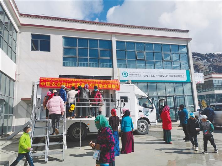 2020年4月1日,農(nóng)行安多縣支行組成金融流動(dòng)服務(wù)團(tuán)隊(duì),赴山南森布日色務(wù)鄉(xiāng)開展的金融流動(dòng)服務(wù)。