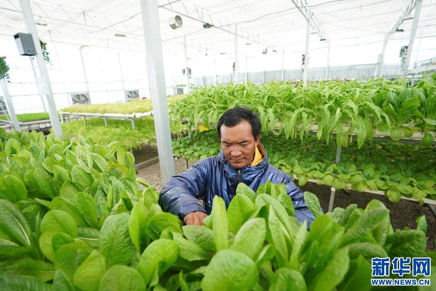 在西藏阿里地區(qū)噶爾縣生態(tài)農(nóng)業(yè)產(chǎn)業(yè)園,噶爾縣左左鄉(xiāng)上左左村村民宿加在查看蔬菜生長情況(7月25日攝)。2017年,宿加來到噶爾縣生態(tài)農(nóng)業(yè)產(chǎn)業(yè)園打工,學(xué)習蔬菜種植技術(shù)。如今,他已成為噶爾縣生態(tài)農(nóng)業(yè)產(chǎn)業(yè)園的一把好手,每個月有6000元的收入。新華社記者 詹彥 攝