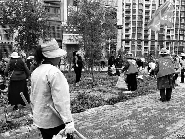東嘎鎮(zhèn)祥和苑社區(qū)每周末以聯(lián)戶為單位,整治衛(wèi)生環(huán)境,摒棄“臟、亂、差”,營造良好的社區(qū)環(huán)境?!懊總€周末,我都會參加志愿服務(wù)活動,主要是清理社區(qū)公共區(qū)域,有時也會去清理河道,希望可以為社區(qū)建設(shè)出份力?!苯衲?2歲的老人卓瑪告訴記者。