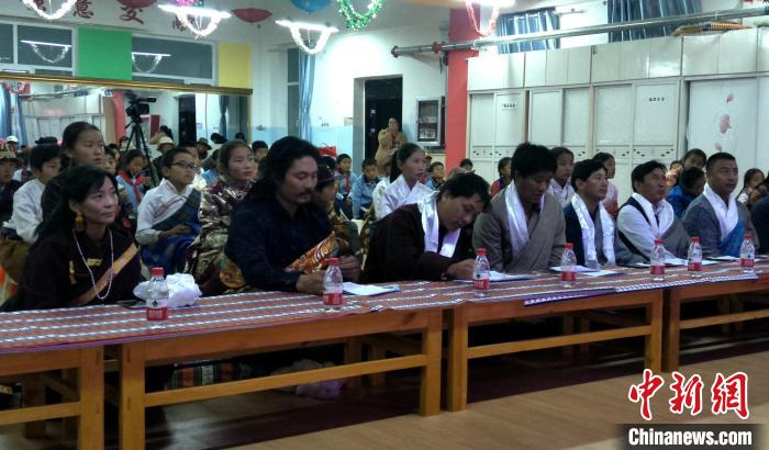 圖為格熱(前排左二)在逗曲比賽中當(dāng)評(píng)委。(資料圖) 受訪者供圖