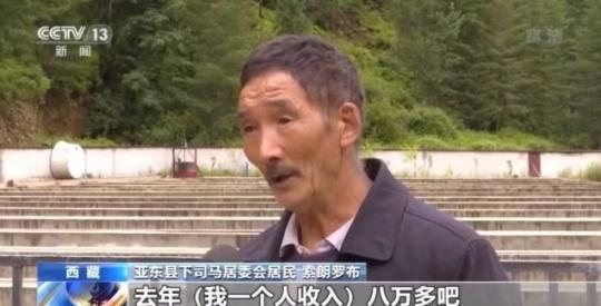 亞?wèn)|縣下司馬居委會(huì)居民 索朗羅布:去年(我一個(gè)人收入)八萬(wàn)多,魚塘里面工資也有,國(guó)家邊境補(bǔ)貼也有,生活可以的,沒(méi)事(問(wèn)題)的。