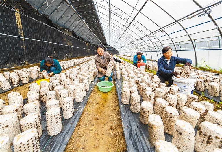 圖為當?shù)剞r(nóng)民在木耳種植基地栽種木耳。記者 白娟 張斌 格桑吉美 攝