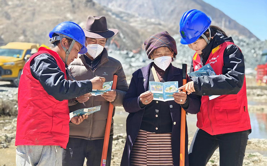 國網(wǎng)曲水縣供電公司共產黨員服務隊在拉薩市曲水縣茶巴拉鄉(xiāng)色麥村開展春耕春灌安全用電宣傳(4月7日攝)。國網(wǎng)西藏電力供圖 旦增央卓 攝