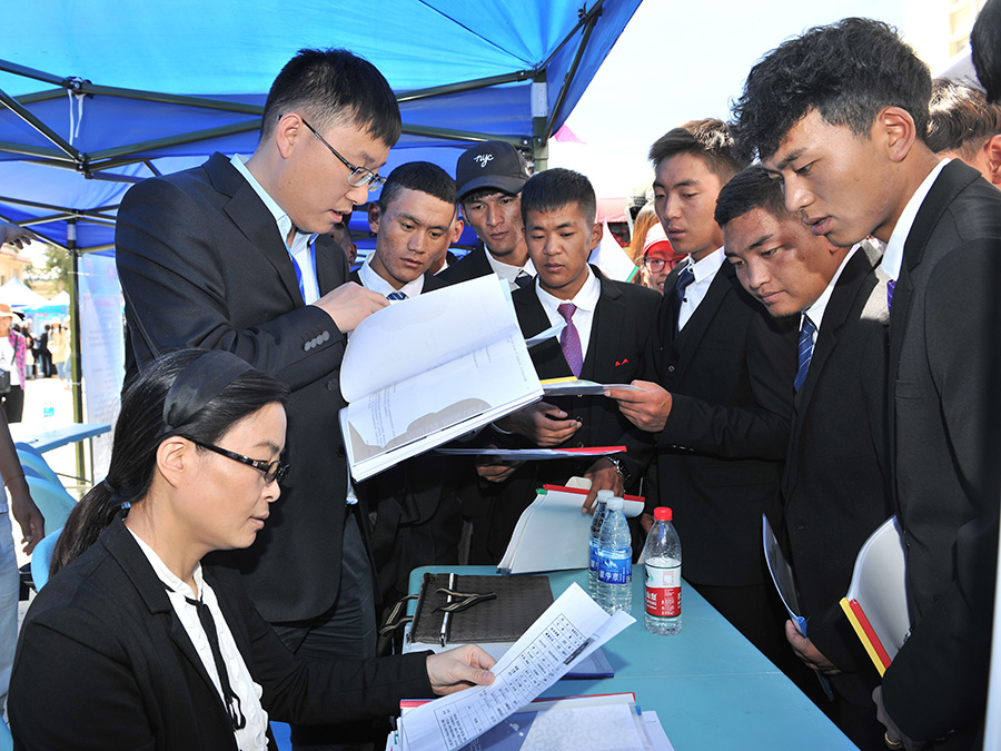 國網(wǎng)西藏電力有限公司人資部組織參加2018年中央企業(yè)區(qū)內國有企業(yè)面向西藏高校畢業(yè)生和貧困家庭勞動力專場招聘會(2018年9月6日攝)。國網(wǎng)西藏電力供圖