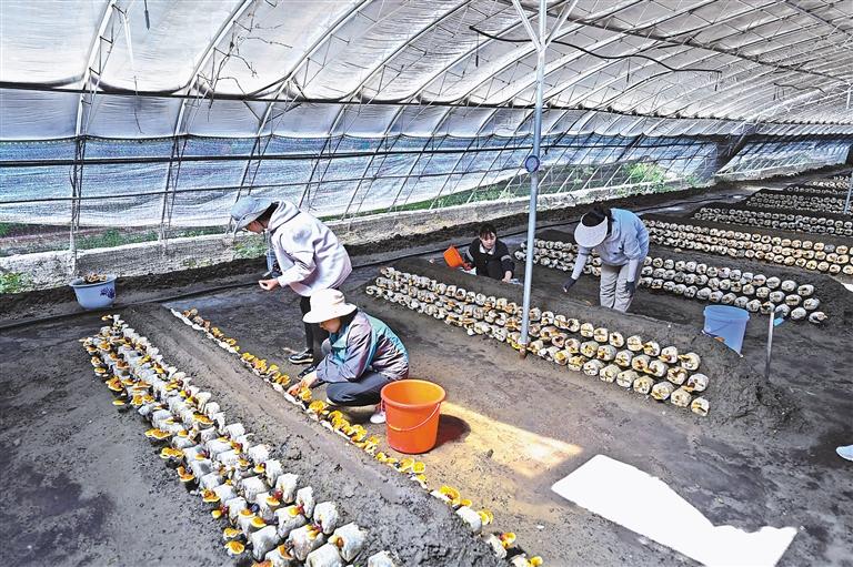 圖為達(dá)孜現(xiàn)代農(nóng)業(yè)產(chǎn)業(yè)園的技術(shù)人員在大棚內(nèi)查看靈芝長勢(shì)。 記者 旦增蘭澤 攝