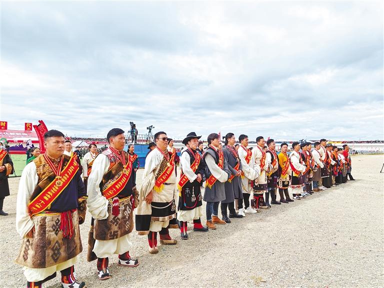 賽馬節(jié)期間,那曲市委、市政府對第二屆“鄉(xiāng)村振興 那曲奮進”活動市級決賽獲獎群眾代表進行隆重表彰。賽馬場內,男女老幼手捧哈達排起長隊,以草原人最熱烈喜慶的方式崇敬心中的“英雄”、歡送身邊的杰出勞動者。