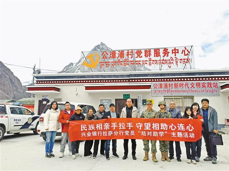 圖為興業(yè)銀行拉薩分行開展黨員“結(jié)對助學(xué)”主題活動時(shí)的合影。