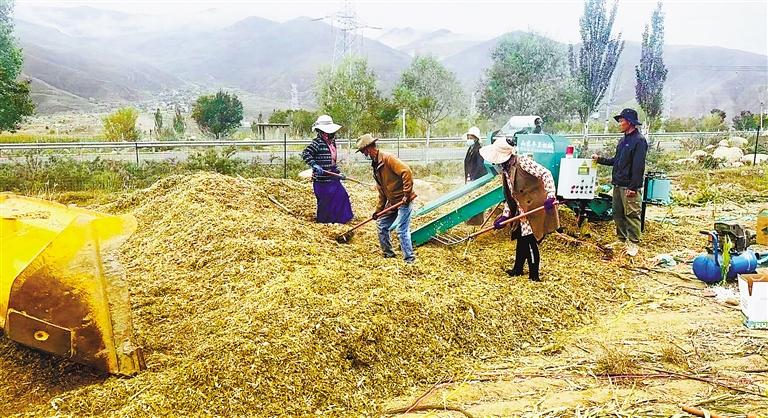 走在雅魯藏布江沿岸,成片的玉米地呈現(xiàn)眼前,讓人意想不到的是,半年前這里還是一片荒地?!拔覀兘衲攴N植玉米850多畝,其中,600多畝的玉米長勢(shì)良好,預(yù)計(jì)每畝可收玉米飼草2噸以上?!甭逯檫_(dá)瓦說。目前,玉米秸稈已陸續(xù)開始收割。