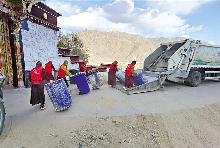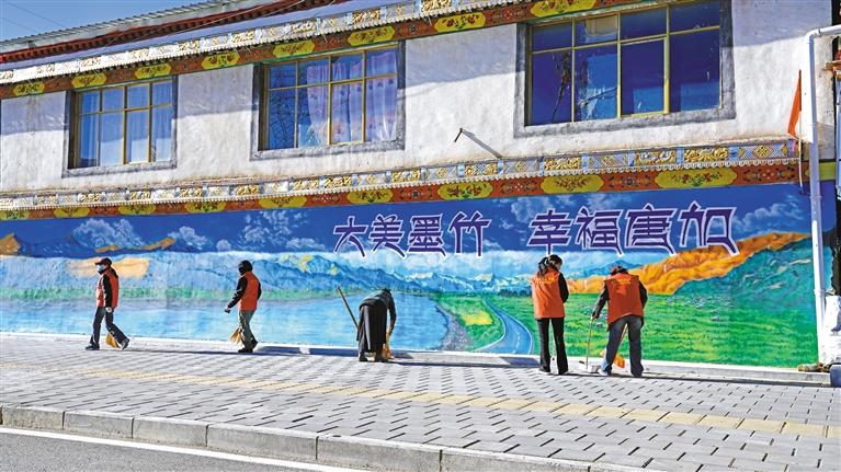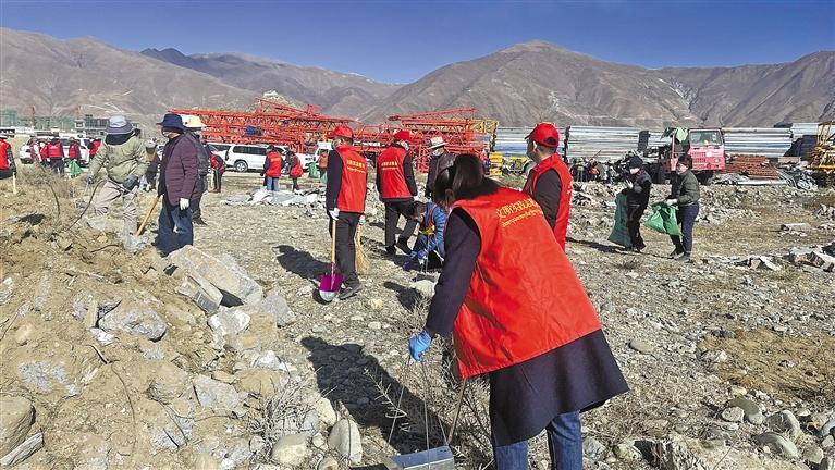 達孜區(qū)干部職工在清潔衛(wèi)生。拉薩記者站 攝