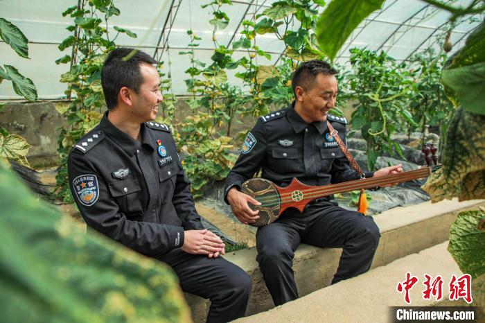 圖為西藏阿里門士邊境派出所民警在溫室大棚內彈奏扎念琴。龍小鳳 攝