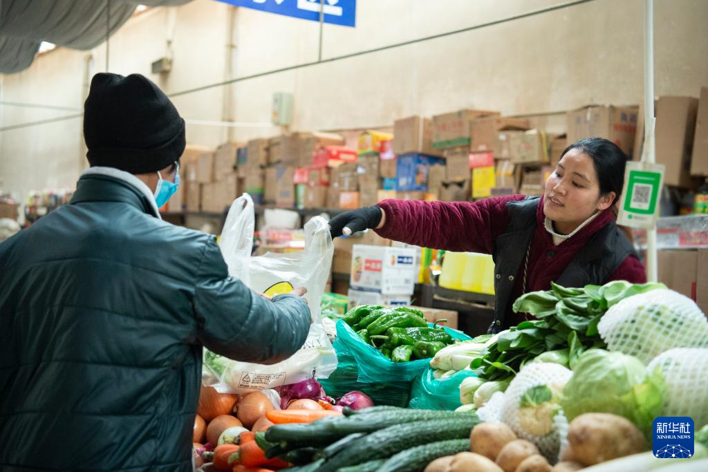 12月15日,羌域市場(chǎng)里,一名顧客在購(gòu)買(mǎi)蔬菜。新華社發(fā)(旦增努布攝)