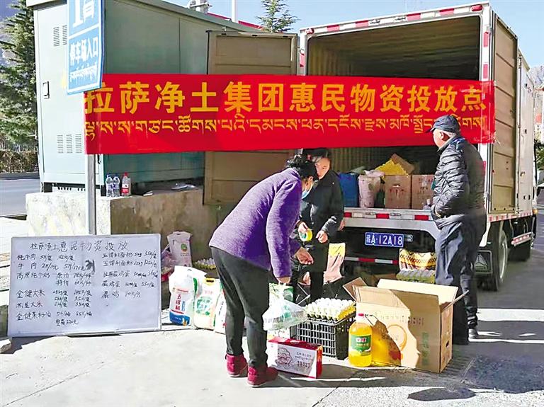 圖為拉薩凈土集團(tuán)惠民物資投放點(diǎn)。記者 拉巴桑姆 攝