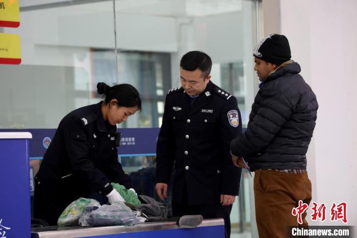 圖為聶拉木邊檢站民警對(duì)出境旅客的行李物品進(jìn)行檢查?!∴u興國 攝