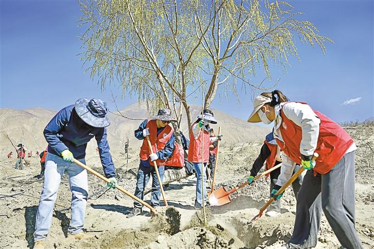 雅魯藏布江兩岸人義務(wù)植樹活動(dòng)