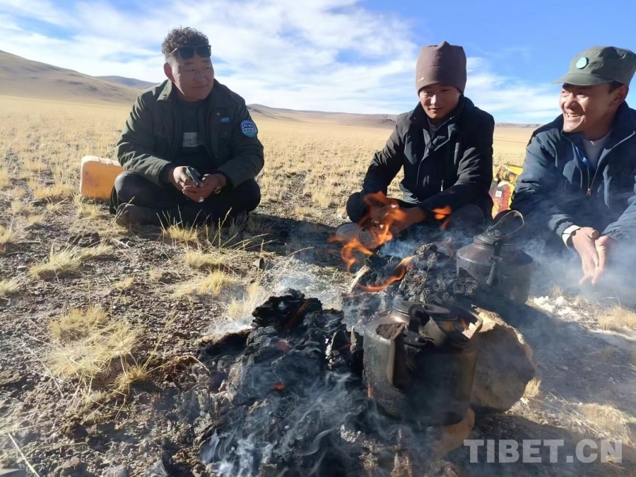 圖為麻木卓瑪管理站站長洛達(dá)和同事們在外巡護(hù)(洛達(dá)為右一)