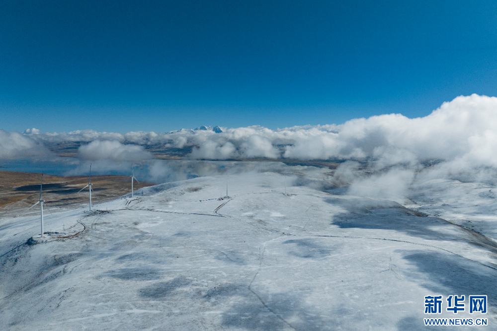 圖為西藏措美哲古風(fēng)電項(xiàng)目一處風(fēng)電機(jī)組(無人機(jī)照片)。新華網(wǎng) 旦增努布 攝