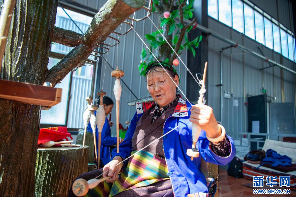 6月24日,合作社員工在捻線。新華網(wǎng) 旦增努布 攝