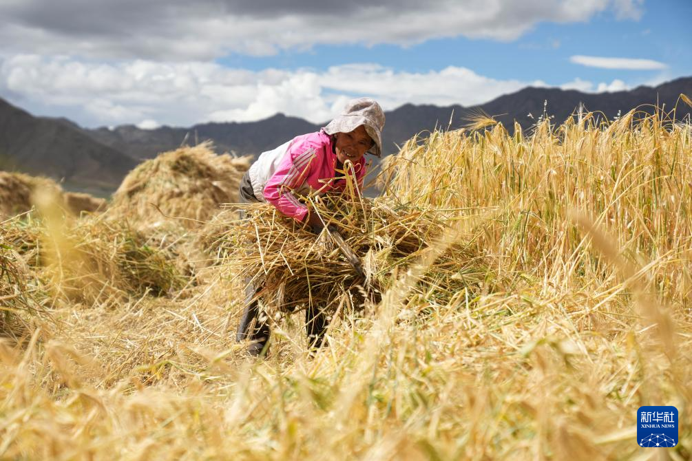 收獲季節(jié),享有“西藏糧倉”美譽的日喀則田野一片金黃。在日喀則市白朗縣巴扎鄉(xiāng),農民采用機械化、半機械化收割方式,高效收獲成熟的青稞。