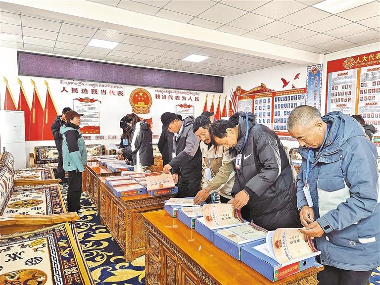 圖為考察人員在錯那學(xué)習(xí)當(dāng)?shù)剜l(xiāng)村振興、基層治理、民族團(tuán)結(jié)和壯大村集體經(jīng)濟(jì)等方面的工作經(jīng)驗(yàn)。記者 丹增平措 攝