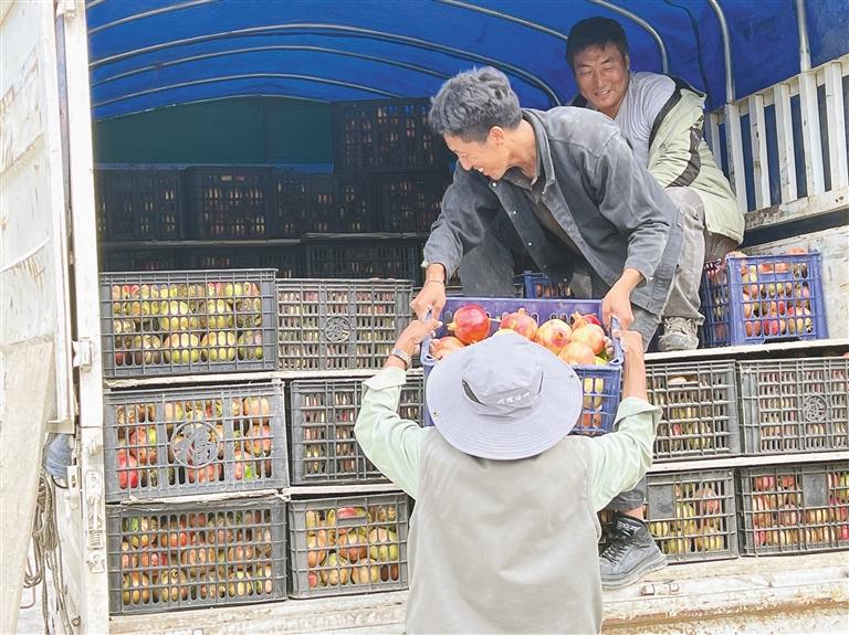圖為昌西村果農(nóng)將石榴裝車,準備外運銷售。記者 劉楓 通訊員 吳子偉 攝