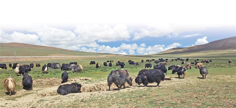 措美縣古堆鄉(xiāng)扎西多松村“百頭牦牛繁育基地”一角。 記者 巴桑旺姆 攝