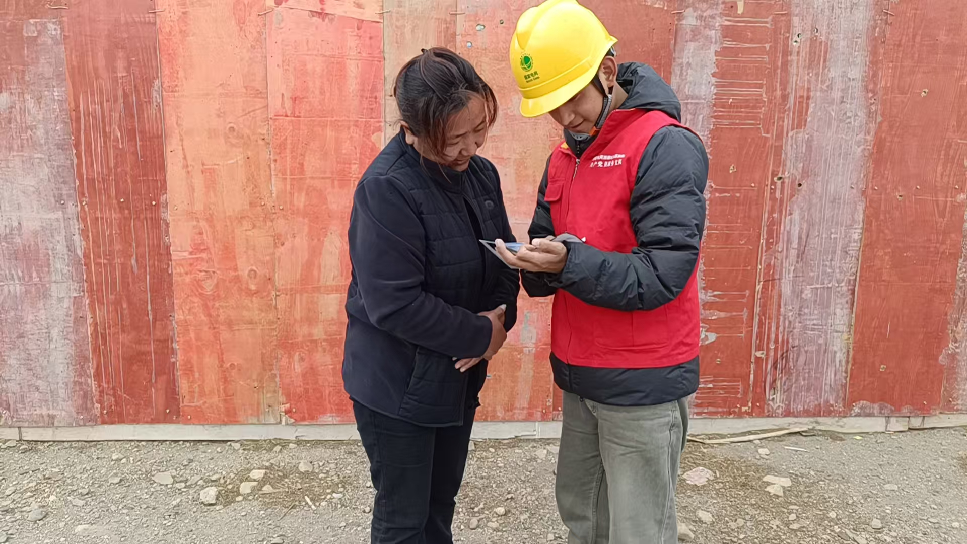 圖為國網(wǎng)嘉黎縣供電公司網(wǎng)格員為用戶講解網(wǎng)上國網(wǎng)app使用方法
