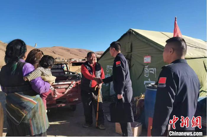 圖為西藏出入境邊防檢查總站第十四批駐村工作隊走訪民眾。徐廣立 攝
