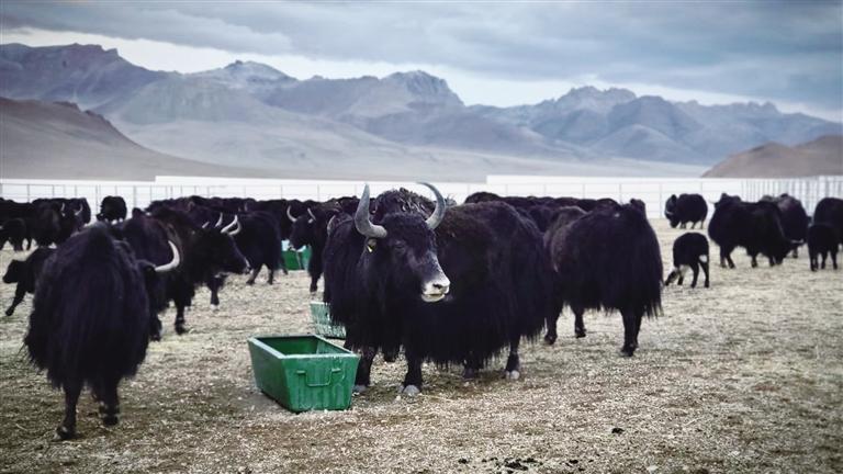 圖為改則縣野血牦牛選育場冬季補飼場景。圖由改則縣野血牦牛選育場提供