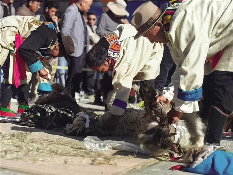 江孜縣群團工作部黨組書記、部長央吉介紹,江孜絨山羊作為當?shù)卣滟F的種質(zhì)資源,其所產(chǎn)的羊絨不僅是氆氌產(chǎn)業(yè)的核心原料,更是牧民增收致富的“金羊毛”。近年來,在江孜縣人民政府的大力支持以及上海援藏江孜小組的協(xié)同推動下,江孜縣的絨山羊產(chǎn)業(yè)實現(xiàn)了從種質(zhì)資源保護到產(chǎn)業(yè)鏈延伸的跨越式發(fā)展,取得了顯著的經(jīng)濟效益和社會效益。