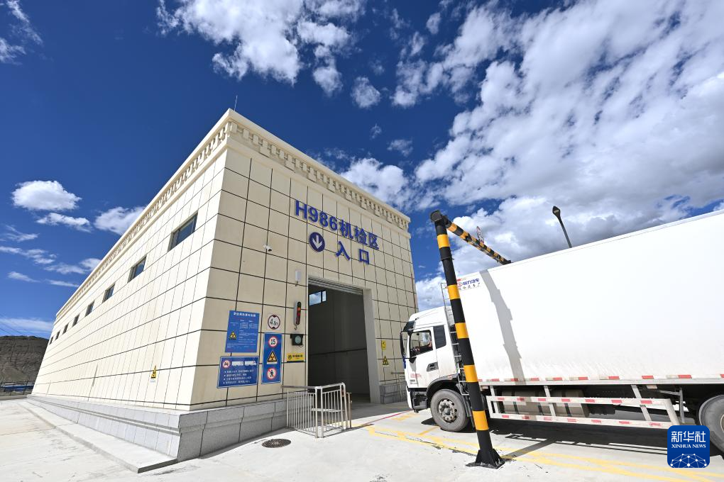 7月16日,一輛貨車進(jìn)入日喀則國際陸地港出口貨物查驗(yàn)場(chǎng)H986機(jī)檢區(qū)。新華社記者 李鑫 攝