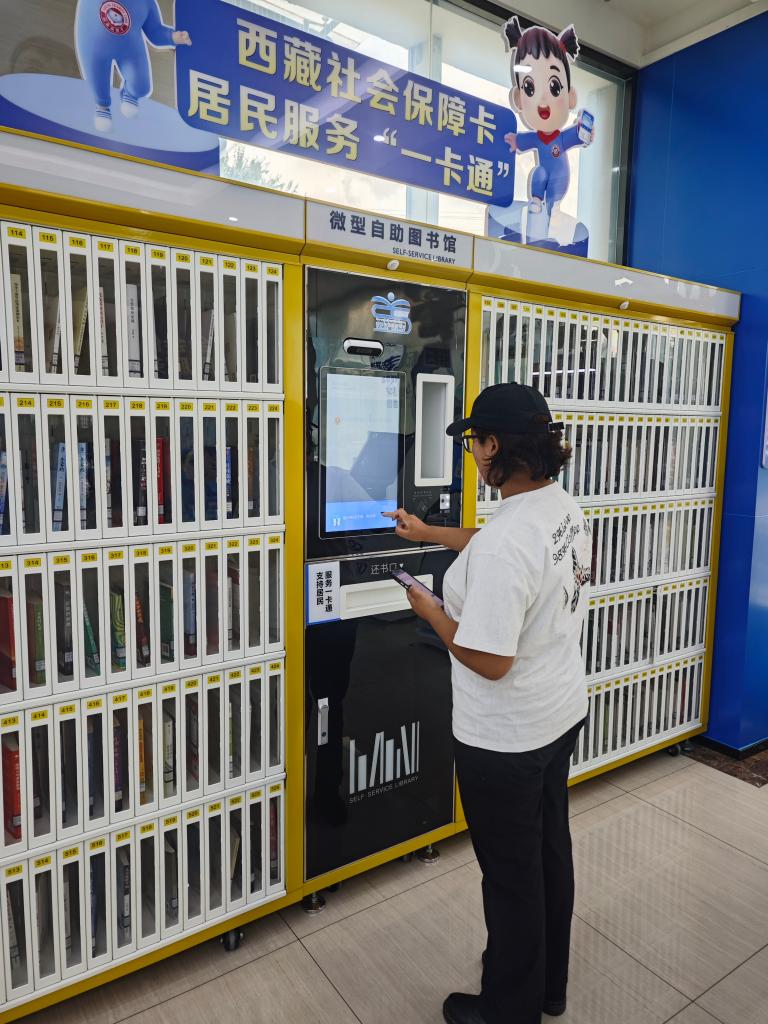 市民在中國建設銀行拉薩城西支行使用社保卡借閱圖書。(受訪者供圖)