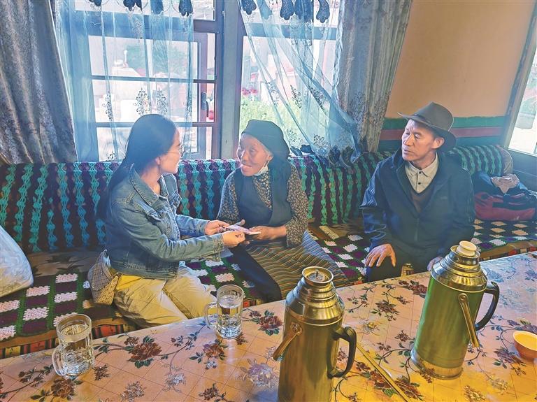 圖為駐茶巴朗村工作隊員,走進困難群眾家中,將幫扶資金交到他們手中。記者 劉斯宇 通訊員 肖通 攝