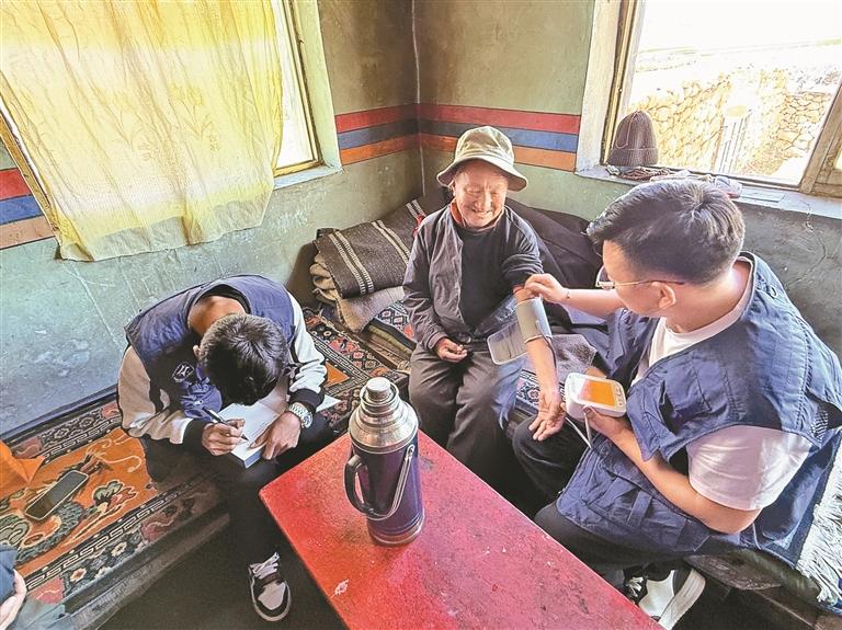 摸清需求后,阿旺旦增制定了詳細(xì)的服務(wù)方案:每周兩次上門巡訪,為曲宗測血壓、檢查皮膚,教卓嘎怎樣給曲宗翻身按摩防褥瘡;協(xié)助申請護(hù)理床、紙尿褲等物資,并現(xiàn)場演示使用方法;節(jié)日時(shí)帶上哈達(dá)、酥油茶上門,陪老人聊天、給她讀新聞。