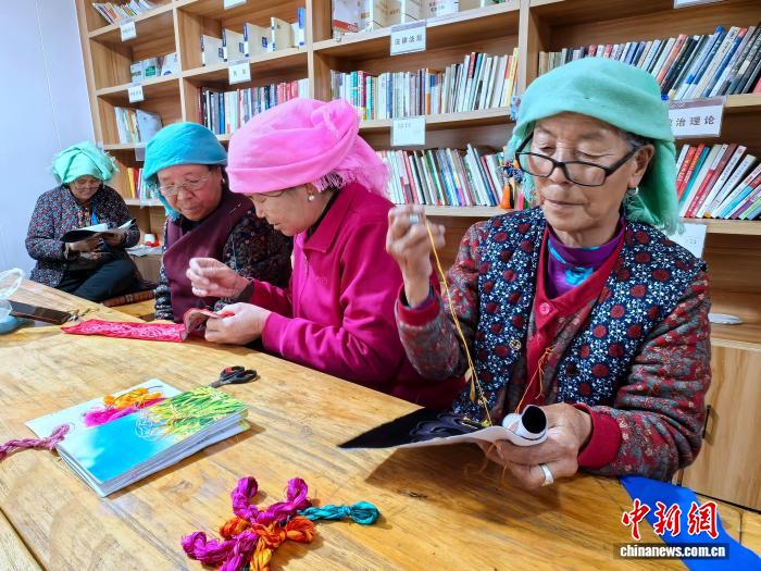 3月11日,青海省海東市互助土族自治縣班彥村,盤(pán)繡園里繡娘們正在趕制新娘裝。李雋 攝