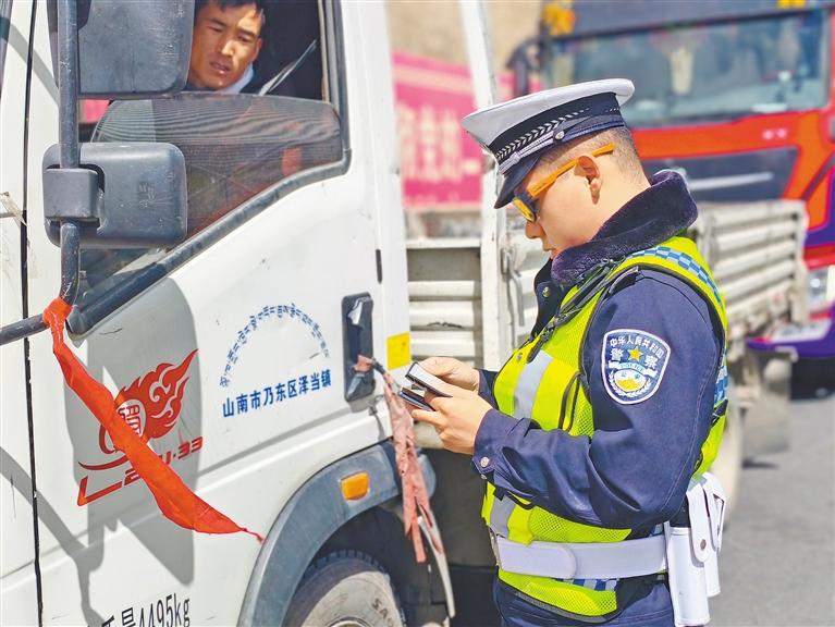 拉薩交警在國(guó)道沿線開(kāi)展路檢路查工作。