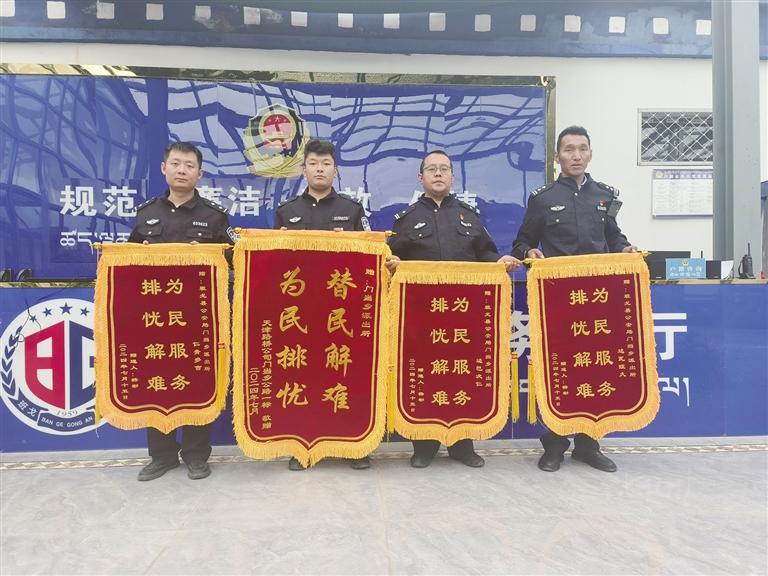 門當鄉(xiāng)派出所收到的錦旗。圖由門當鄉(xiāng)派出所提供