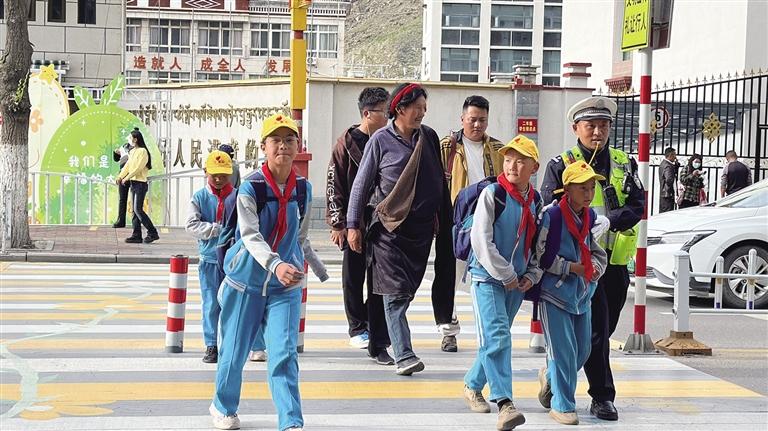 此外,拉薩交警還利用每日“護學崗”時間,主動引導學生正確過馬路、認識交通信號燈,提醒學生不在馬路上嬉戲、追逐打鬧,不乘坐三輪摩托車等不規(guī)范車輛,并向接送學生的家長講解接送孩子途中應注意的安全事項,告誡學生家長以身作則,杜絕橫穿馬路、闖紅燈等交通陋習,共同營造安全、暢通、文明和諧的道路交通環(huán)境?!拔覀児膭詈⒆觽儗W到的交通安全知識帶回家,充分發(fā)揮‘小手拉大手’作用,向家人宣傳道路交通安全知識,強化家長、學生安全意識和自我保護意識。”馬定雄說。