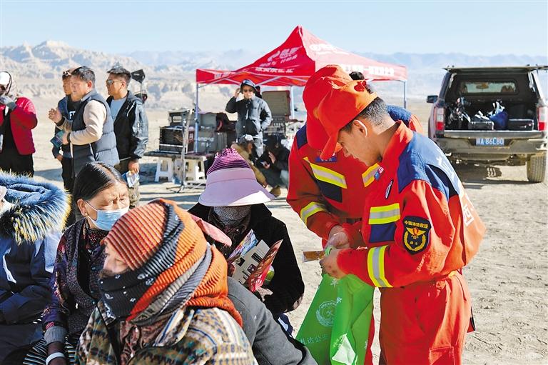 圖③:札達(dá)縣消防救援大隊(duì)指戰(zhàn)員在古格聲聲音樂(lè)會(huì)執(zhí)勤點(diǎn)開(kāi)展消防宣傳活動(dòng)。