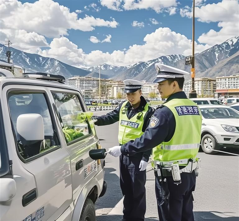 民警對(duì)過(guò)往的車(chē)輛進(jìn)行檢查。圖由拉薩交警提供
