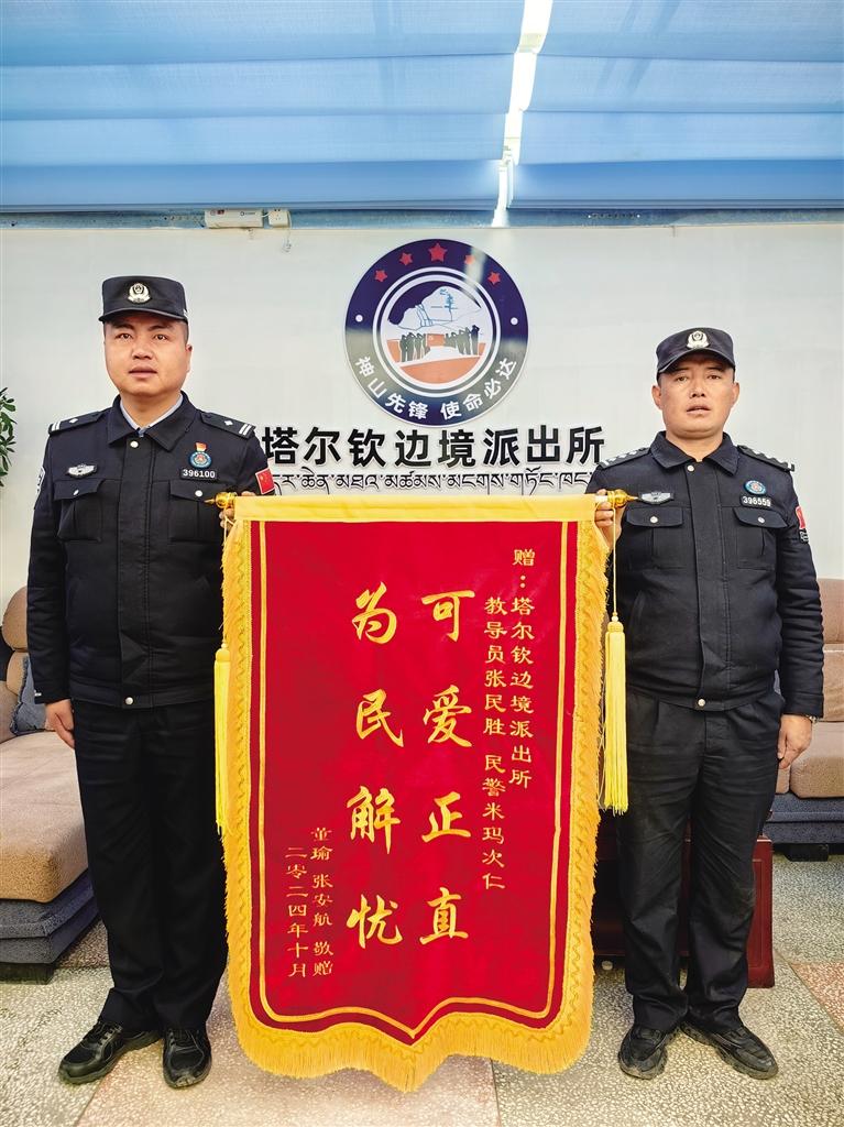 2024年10月12日,日喀則邊境管理支隊(duì)扎西宗邊境派出所收到了北京游客楊先生寄來的錦旗,錦旗上印著“長的帥 破案快 真衛(wèi)士 保平安”。楊先生通過這樣的方式,對扎西宗邊境派出所民警快速反應(yīng)、專業(yè)執(zhí)法和熱情服務(wù)表示衷心的感謝。