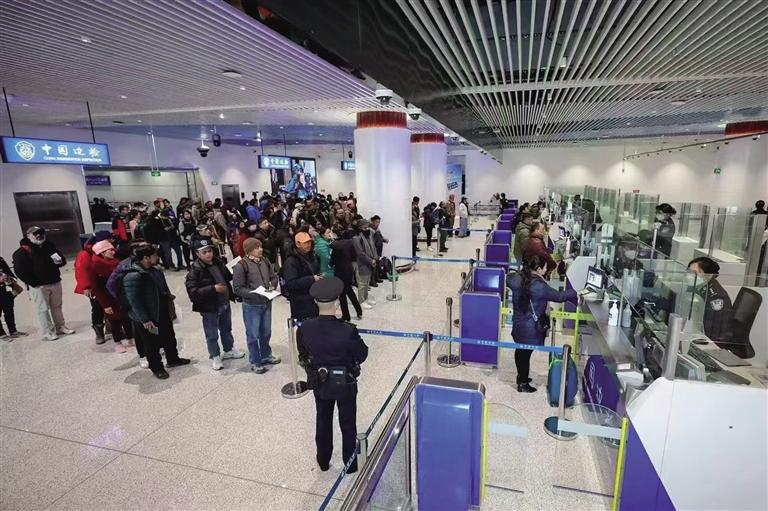 在邊境通行證辦理和邊境檢查站點(diǎn)優(yōu)化方面,西藏邊檢總站聚焦邊境通行證申領(lǐng)辦理過(guò)程中的難點(diǎn)、痛點(diǎn)、熱點(diǎn)問(wèn)題,逐個(gè)進(jìn)行攻堅(jiān)突破。2024年,新增18個(gè)非邊境縣辦理邊境通行證的權(quán)限,至此,辦證室(點(diǎn))已覆蓋全區(qū)74個(gè)縣(區(qū)、市)以及重要交通樞紐,極大地方便了群眾就近辦理邊境通行證。同時(shí),結(jié)合邊境路網(wǎng)建設(shè)規(guī)劃和邊境檢查站點(diǎn)設(shè)置情況,不斷調(diào)整優(yōu)化邊境檢查站點(diǎn)布局,為邊境地區(qū)經(jīng)濟(jì)社會(huì)發(fā)展疏通脈絡(luò)。全年共檢查進(jìn)出邊境管理區(qū)人員1155萬(wàn)余人次。