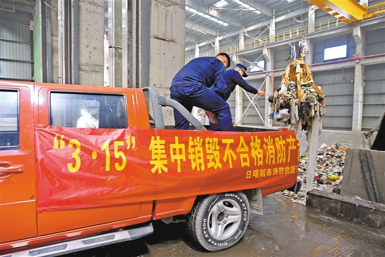 圖為日喀則市消防救援支隊工作人員集中銷毀不合格消防產(chǎn)品。 記者 扎西頓珠 攝