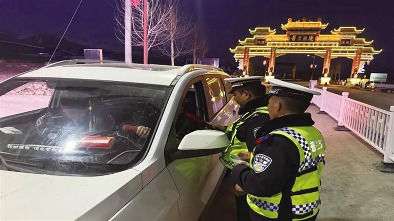 交警檢查過(guò)往車(chē)輛司機(jī)是否酒駕。圖由普蘭縣公安局提供